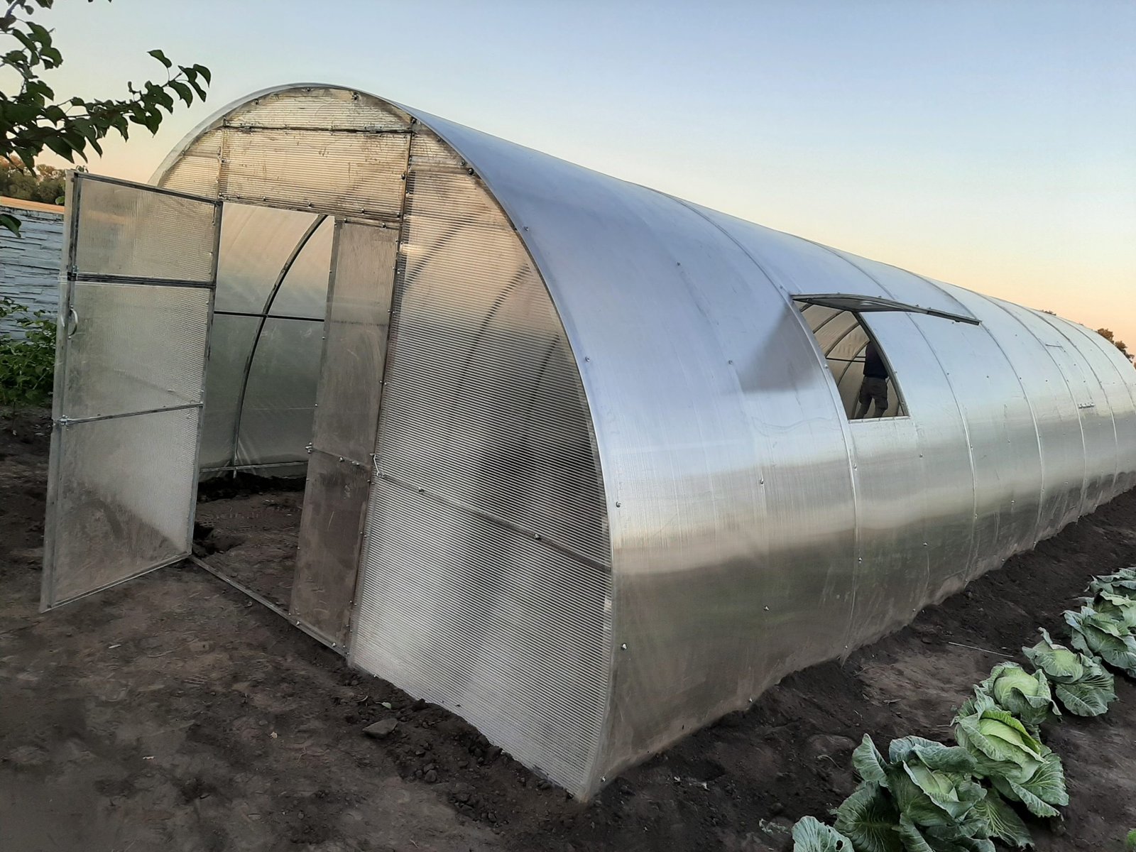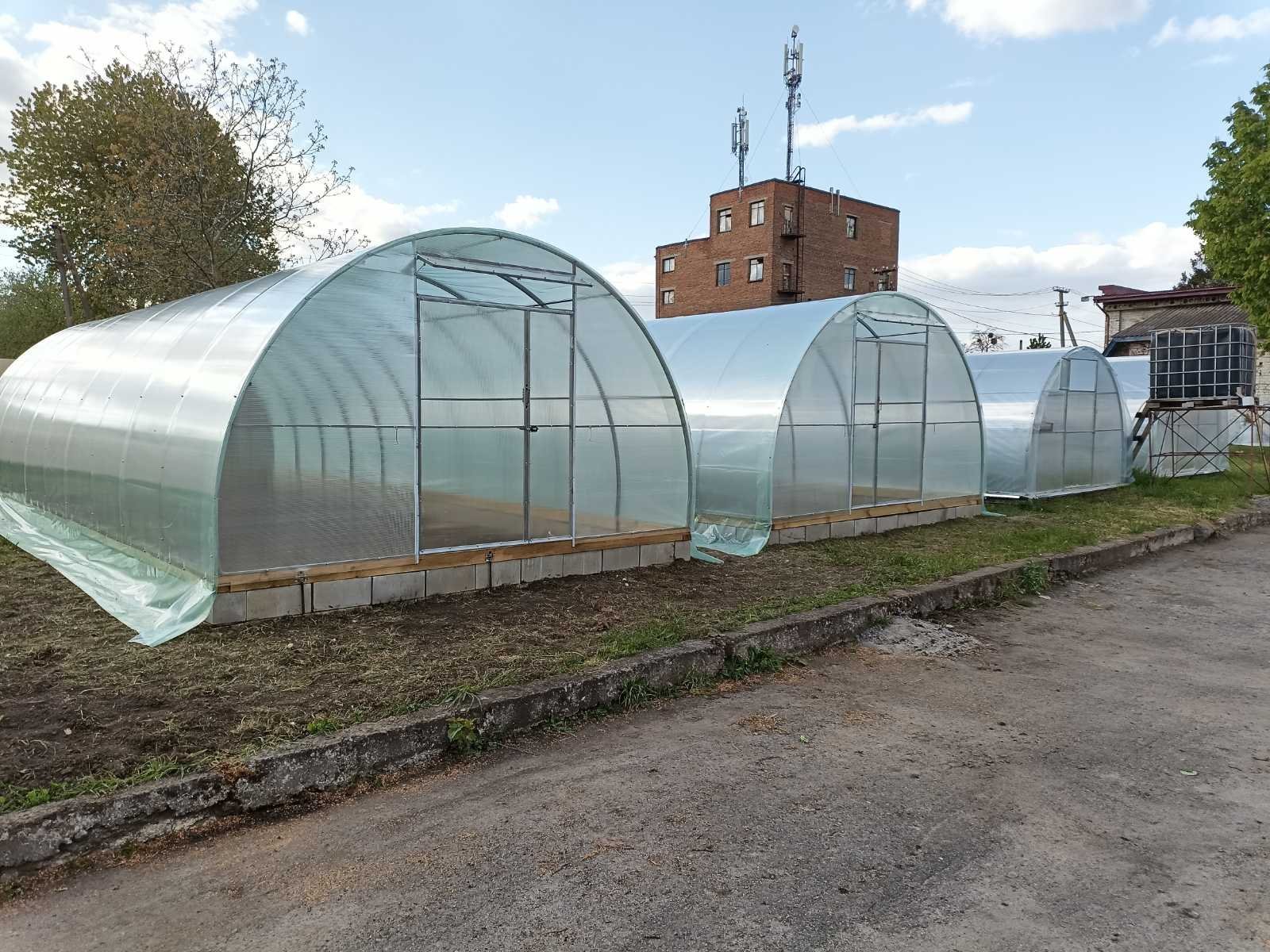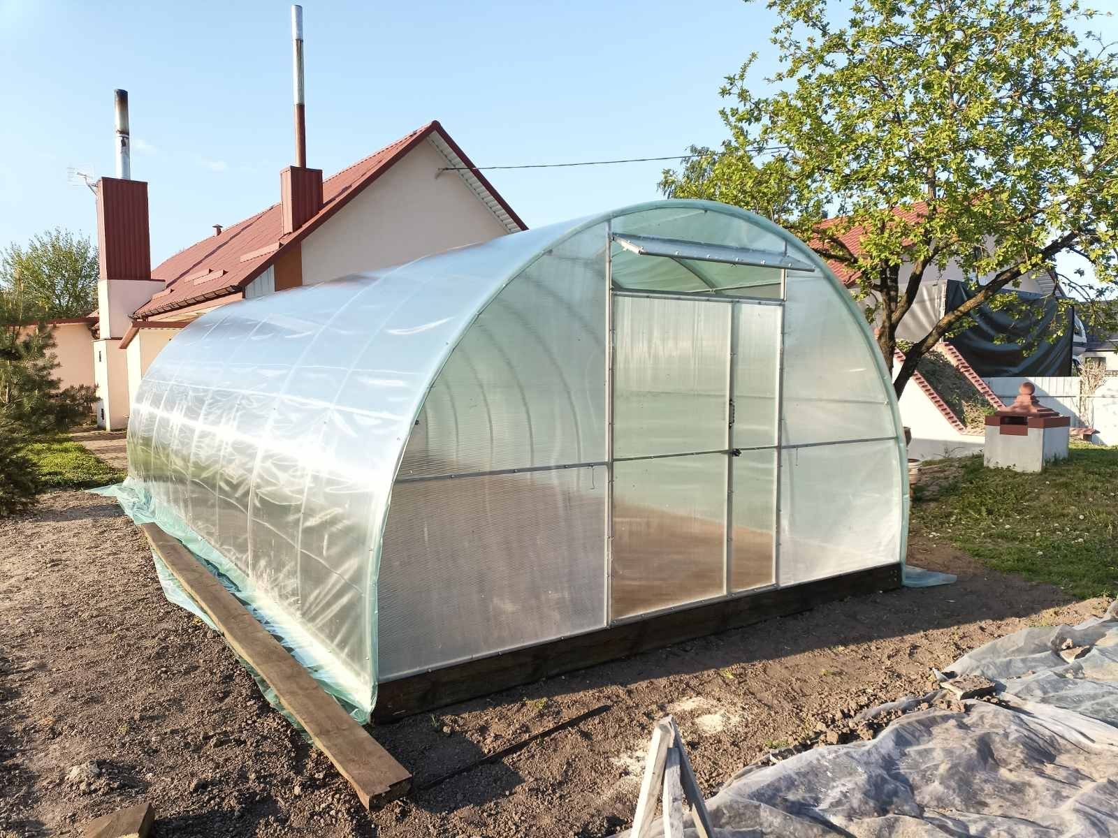 Теплицы шириной 4м на 8м в длину. Это чисто поликарбонатная теплица из профильной трубы диаметром 40х20мм под сотовый поликарбонат 4мм или 6мм.